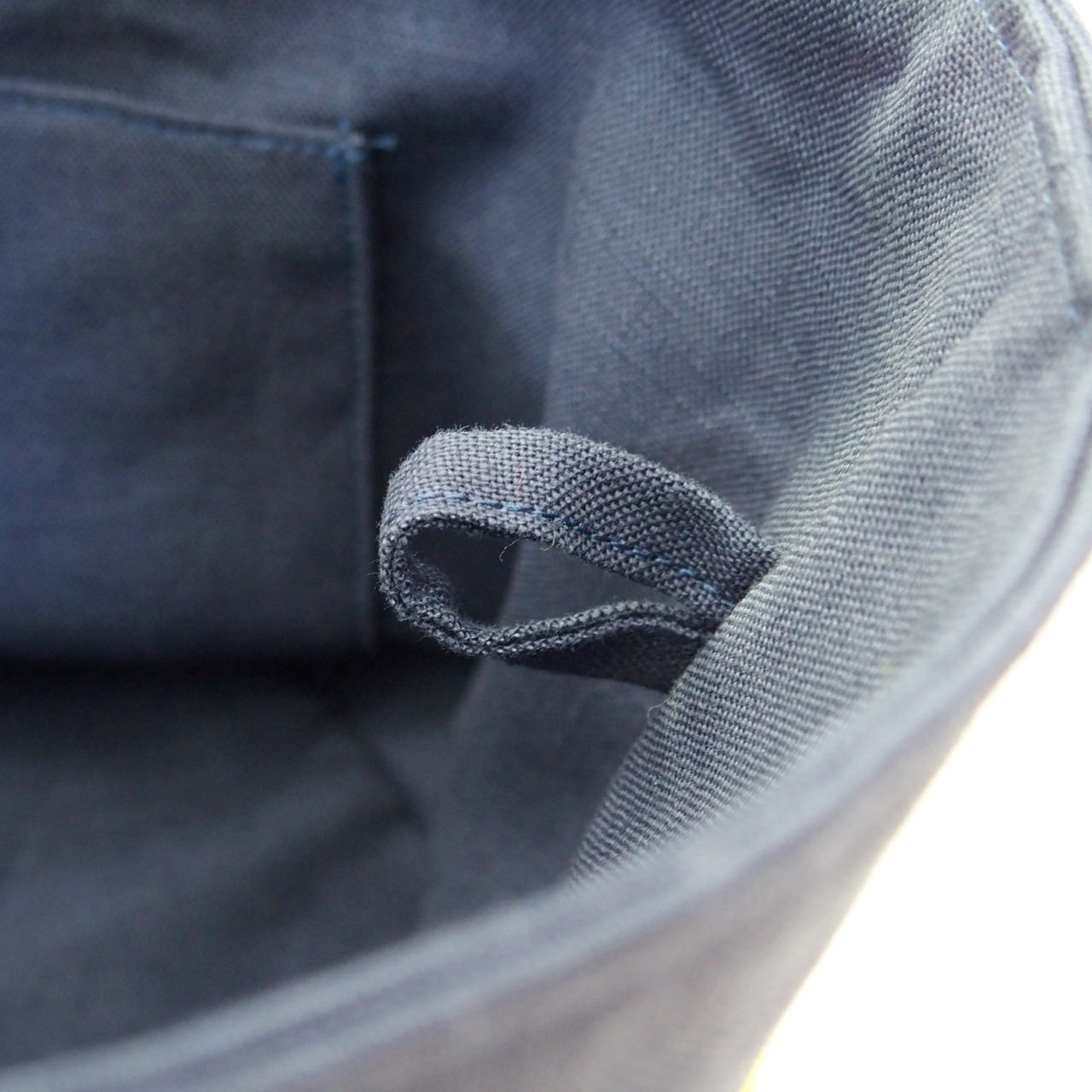 布部分はコットン布に、接着芯を全面貼ってありますので、柔らかい布の質感はそのままに優しく形を保ってくれます。