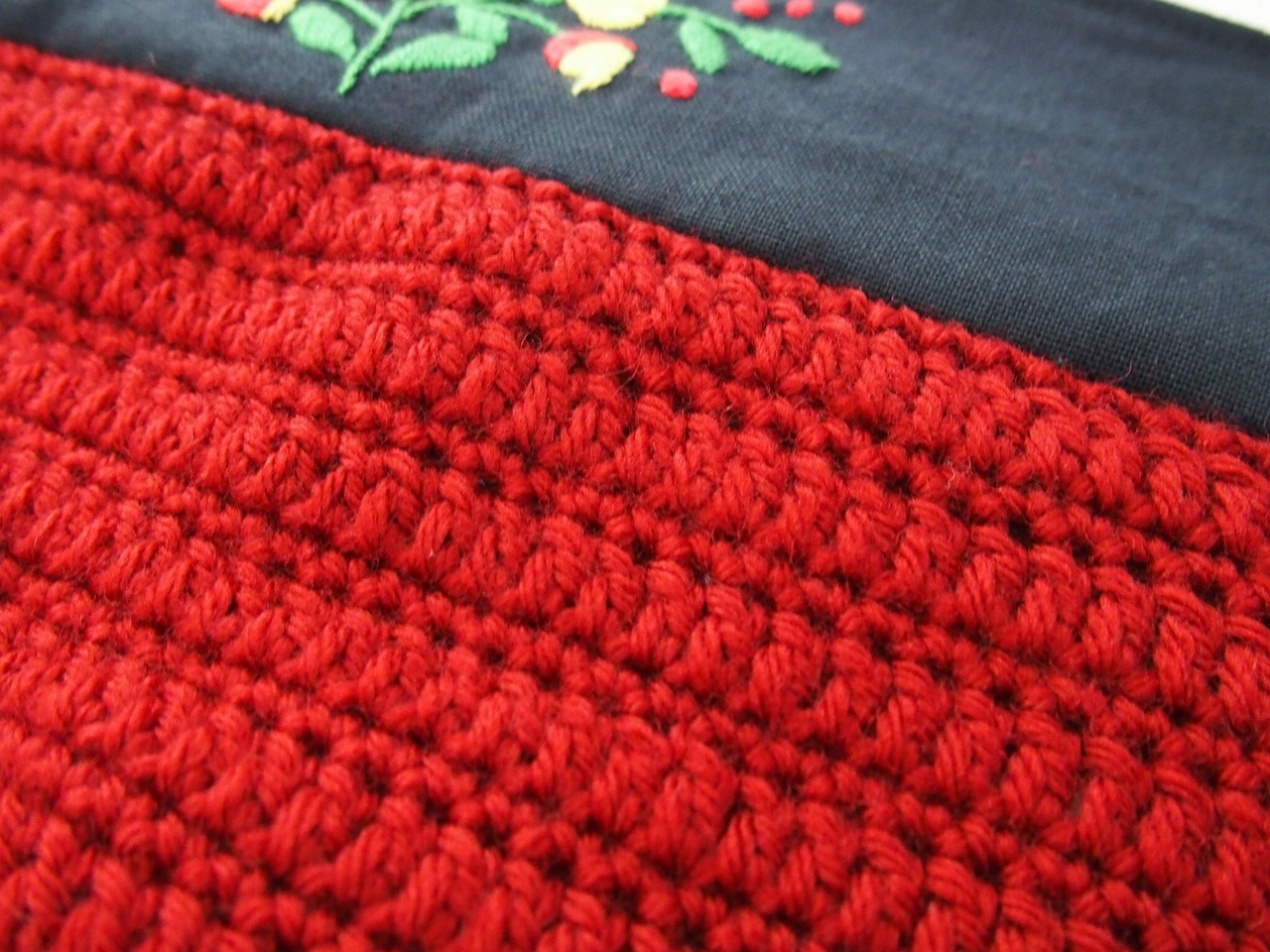 このバッグは、丸底の特徴的な形状と、秋冬にぴったりのハンガリー刺繍と編み物のデザインが魅力です。