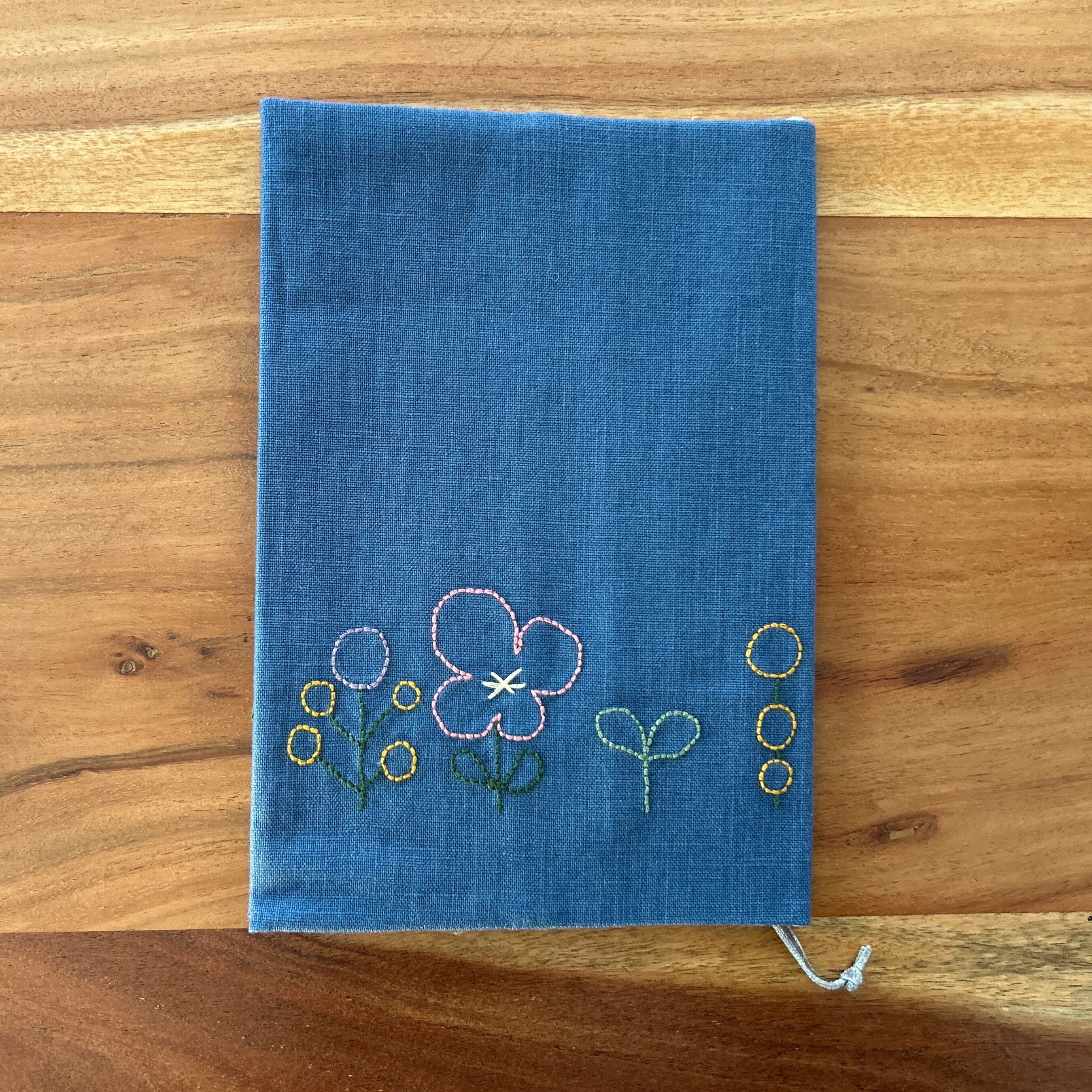 このブックカバーは、ひとつひとつ刺繍し、丁寧に手作りしています。